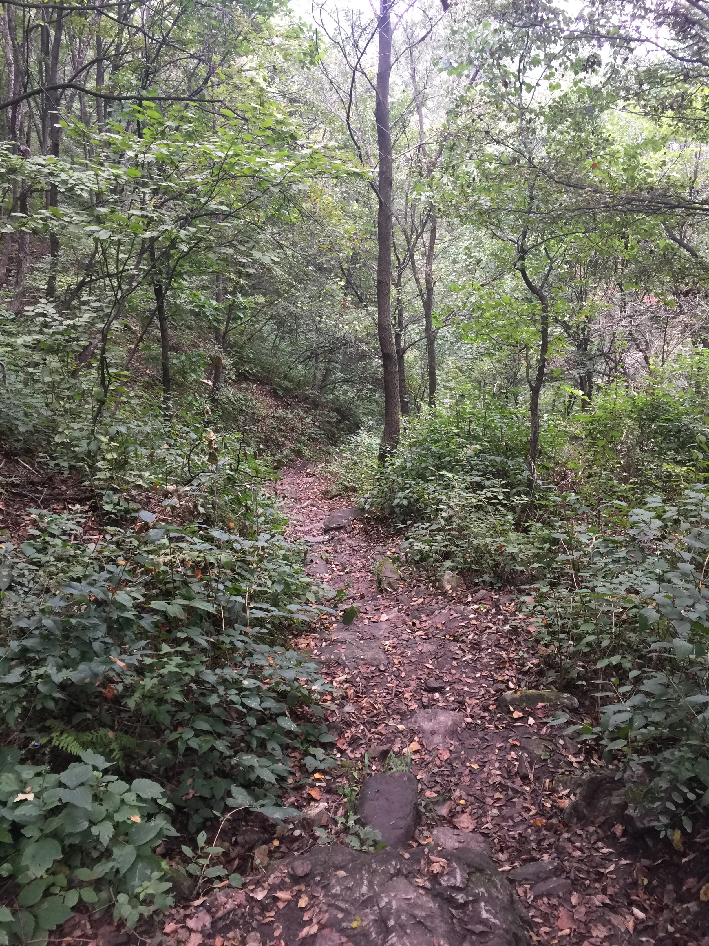 The trail took us through lush forest where the trees sprung up from a red tinged earth. Nothing like the blood red of African or Australian soil, but a definite signal that I was far from home. The peace and solitude of the experience began to relax me. The sound of my footsteps became a gentle metronome to my quickened, labored breathing. The effort of it all was a reward in itself—I knew that so few people would ever get the opportunity to see the Wall like this.